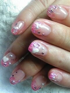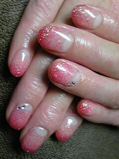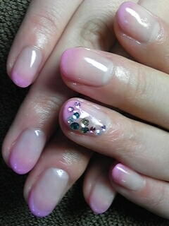 | ピンクグラデーション。ちょこっと乗せたストーンが控え目で可愛い・・・♪ |