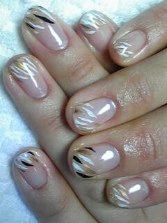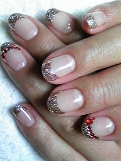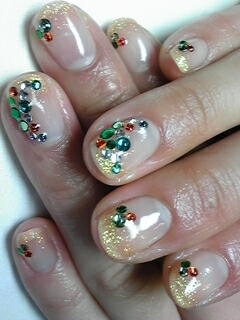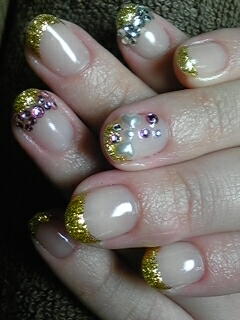 | シャンパンゴールドのフレンチです。ストーンの置き方がポイントです。 |