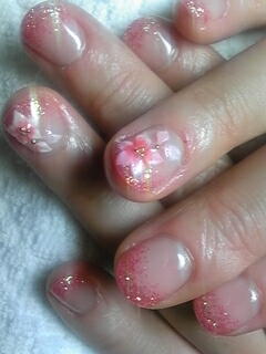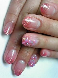 | クリアベースにピンクラメグラデーションは一番人気かも・・・・。3Dのお花は大人っぽくしてあります・・・? |