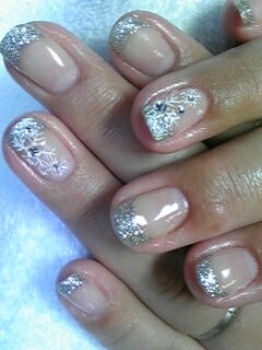 | 見るからに寒い冬。。。シルバーラメフレンチに、アートは雪の結晶です。 |
