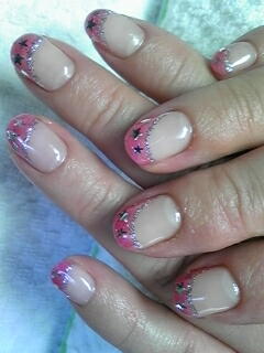 | ピンクの変則フレンチにシルバーのラインと星でキュートです♪完全バーバラおまかせでした。 |