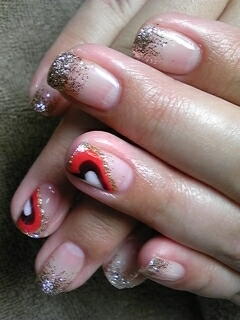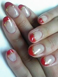 | 真赤なフレンチにゴールドラインを足して・・・ゴージャスになりました。お仕事のため控え目に・・・って派手派手ですけど。。。。笑 |