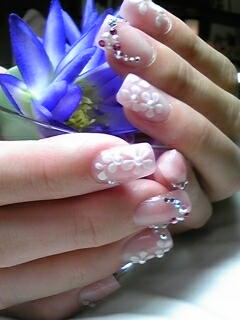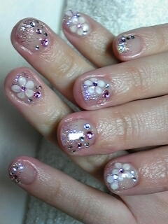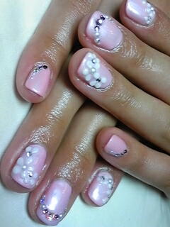 | ベースはマットにパールピンクを。白・ピンクのストーン&お花で華やかに飾りました。 |