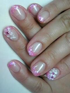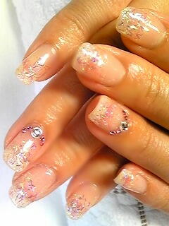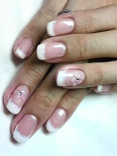 | クリアベースにピンクの小さなホログラムでフレンチに仕上げました。 |