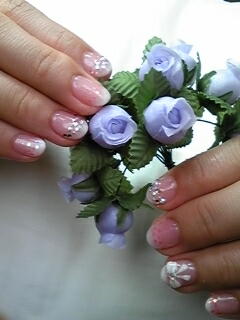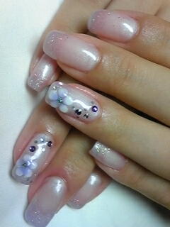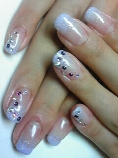 | 白だかパープルだか・・・の微妙な色合いでグラデーション。ストーンを散らして上品ですネ♪ |