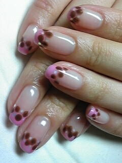 | ベビーピンクのフレンチ部分にチョコ色ドット。なんだか甘そう・・・♪ |